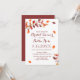 O belo convite inclui os folhetos de outono, em tom de luxúria de castanho, vermelho, laranja queimado e amarelo. Misturado de vários tipos de letra na burgundy de marrom. Clique para personalizar ainda mais para alterar o estilo, o tamanho ou a cor da fonte.