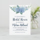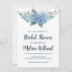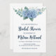 Celebre o seu chá de panela futuro com estes convites elegantes e românticos. Apresentando uma bela pintura aquosa de hidrangeas azuis empoeiradas, acentuadas com delicada paisagem verde e caligrafia elegante, esses convites são perfeitos para uma celebração de primavera ou verão. A paleta de cores azul e branca cria um eterno e um aspecto sofisticado.