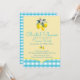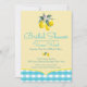 Convites de chá de panela de limão vibrantes. Convite perfeitamente vibrante para chás de panela casuais e CHURRASCOS. Padrão de gingham de palha leve com sotaque de limão pintado. Esta design de casamento coordena-se com a nossa coleção de casamento Luscious Lemon. Para mais material de casamento, veja MetroEvents no Zazzle.