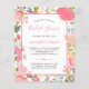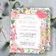 Modelo de convite de chá de noiva rosa floral com um lindo padrão floral em tons de coral, rosa, azul e verde com flores silvestres e folhagens e uma fonte moderna e sofisticada. +++++++++++ O convite é ideal para festas de chá de noiva country rústico boêmio primavera ou verão floral jardim elegante ao ar livre ou quintal. ++++++++++ POR FAVOR, LEIA ISSO ANTES DE COMPRAR! Este é um cartão de casamento acessível impresso em uma folha de papel (cada folha tem um cartão). ++++ Para a melhor relação preço-qualidade, nosso conselho é escolher o tipo de papel Semi-Brilho (é grosso o suficiente para ser usado para papelaria) ++++ Se você precisar de envelopes, escolha a OPÇÃO DE ENVELOPE. +++ Verifique novamente todas as informações e ortografia do seu texto porque você receberá exatamente o que vê - ninguém mais verificará nada antes da impressão. ++++ Este cartão é projetado para o tamanho 4,5" x 5,6". No caso de você escolher outro tamanho do cartão e o texto ultrapassar a página, tudo precisará ser corrigido antes de