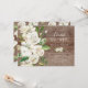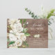 Chá de panela floral com flores rosas brancas pintadas à mão lindíssimas, colocadas sobre um fundo de madeira rústico. Sacudir o nosso convite para ver uma floral coordenada de volta para um toque especial extra.