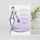 convites de chá de panela elegantes com uma noiva num fundo lilás desvanecido! modelo fácil de usar, com espaço para adicionar suas próprias informações.
