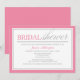 Convites de chá de panela com um moderno design de tipografia rosa e cinza e uma borda rosa e cinza. A parte de trás é um rosa sólido. Cor de rosa moderno e Convites de chá de panela Cinzas.