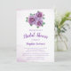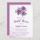 Estes convites de chá de panela de aquarela apresentam belos e elegantes rosas roxos. Fazem parte de uma coleção que inclui artigos de papelaria e presentes de casamento. Visite as páginas de coleta em nossa loja para ver a gama de cheios de casamentos e produtos de noiva que você pode personalizar para o seu casamento.