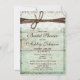 Rústica Convites de chá de panela de madeira verde-celeira com um fundo de madeira verde angustiada. Perfeito para uma noiva country. Basta acrescentar a sua própria redação chá de panela. O lado de trás também tem o design de madeira de celeiro rústico. O rendas e o fio são apenas designs impressos, não rendas reais ou fio.
