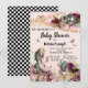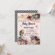 Convites de chás de bebê vintage da Alice no País das Maravilhas com ilustrações vintage da Alice no País das Maravilhas em um fundo xadrez rosa e dourado vintage e preto e branco. Esses belos convites de chá de bebê vintage da Alice no País das Maravilhas são facilmente personalizados para o seu evento, bastando adicionar seus detalhes.