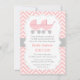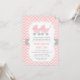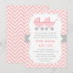 Um convite de chá de bebê de gêmeas elegante e sofisticado para mães que esperam um par de meninas. Apresenta carrinhos de bebê cor-de-rosa com padrão de bolinhas. Fundo de xadrez cor-de-rosa e branco. Personalize facilmente com os detalhes da sua festa.