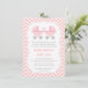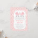 Um convite de chá de bebê de gêmeas elegante e sofisticado para mães que esperam um par de meninas. Apresenta carrinhos de bebê cor-de-rosa com padrão de bolinhas. As alças dos carrinhos são criativamente dispostas para formar um coração. Fundo de listras diagonais rosa e branco. Personalize facilmente com os detalhes da sua festa.