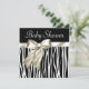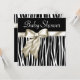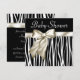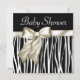 Convites de chá de bebê elegantes em creme marfim e preto com laço e fita zebra. Este lindo design de chá de bebê em preto e marfim com zebra funciona bem para um convite de festa de revelação de sexo, e para um chá de bebê de menina ou menino. Adicione seus detalhes na frente e/ou atrás simplesmente escolhendo o botão "Personalize!" para começar a adicionar os detalhes do seu evento, estilo de fonte, tamanho e cor da fonte e texto. Por favor, note que todos os desenhos de convite que você encontrará na Zazzle são gráficos impressos em papel liso sem joias, laços, relevos, rebaixos ou peças ou partes adicionadas.