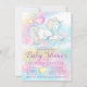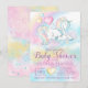 Convites de chás de bebê unicórnio para meninas com adorável unicórnio pastel em um lindo fundo de arco-íris em aquarela pastel. Estes convites de chá de bebê unicórnio são facilmente personalizados para o seu evento, bastando adicionar os seus detalhes. Você pode mover o coração e as linhas conforme necessário.