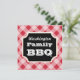 Gingham vermelho clássico decora este convite divertido. Use estes convites de estilo retrô para um CHURRASCO, cookout, Dia da Independência, 4 de julho, um piquenique, reunião familiar, churrasco familiar, biscoito familiar, etc.... Personalize esses convites para atender às suas necessidades. Os designs são da arte original.