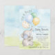 Convites de churrasco de bebê menino elefante com adorável elefante de bebê menino em aquarela com balões em um fundo de céu e grama. Estes convites de churrasco de bebê menino elefante são facilmente personalizados para o seu evento, basta adicionar seus detalhes.