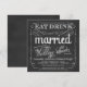 Convites de Chá de Cozinha para Casal em Quadro de Giz Rústico Elegante -- Comam, bebam e sejam Casados - Esboços sinuosos e elaborados e moldura rústica sofisticada em quadro de giz preto ardósia. Adicione o nome da noiva e as informações da festa neste modelo fácil de usar. Caligrafia a giz em estilo vintage e tipografia com letra cursiva elegante - mude os estilos de fonte para refletir o tema de casamento retrô formal ou semi-formal. O estilo de convite de quadro de giz quadrado é perfeito para casamentos modernos e sofisticados com um toque divertido de charme sofisticado para a noiva e o noivo tradicionais. NOTA: O design deste produto está configurado apenas para cartões quadrados, o que requer postagem extra.