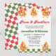 Primeiramente, nosso convite de chá de bebê de pizza é perfeito para qualquer tema de chá de bebê, menino ou chá de bebê de piquenique. Este convite para impressão apresenta um charmoso design de "bebê fatia de pizza" no topo. A metade superior ostenta um padrão de xadrez vermelho e branco bicolor, enquanto a metade inferior exibe um padrão de xadrez verde e branco bicolor. Adicionando diversão, há 3 fatias de pizza kawaii fofas com braços e pernas sorrindo e mais 2 fatias de pizza kawaii fofas com braços e pernas com uma chupeta na boca. Este convite de estilo retrô está contra um fundo branco elegante, disponível como convite digital 5x7 e modelo de convite para impressão. 🍕