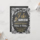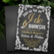 Convites de churrasco eu aceito com belo texto dourado e alianças em um fundo de quadro negro com borda em pergaminho. Este divertido convite de churrasco eu aceito rústico é facilmente personalizado para o seu evento, basta adicionar seus detalhes.