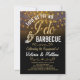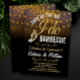 Convites de festa de noivado de churrasco com luzes de corda, escrita em dourado e anéis de casamento em um fundo de luzes de corda brilhantes. Este convite de churrasco eu caso rústico é facilmente personalizado para o seu evento, basta adicionar seus detalhes. Você também pode alterar a cor do fundo.