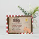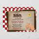 Ótimo convite para casais que estão tendo uma recepção de churrasco após o casamento. O convite tem um fundo xadrez vermelho e branco e um gráfico de um porco.