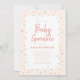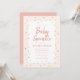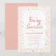 Um convite de chuveirinho de bebê caprichoso com uma borda de confeitos coloridos em um fundo rosa discreto.