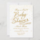 Convites de Chuveiro de Bebê Branco e Dourado com Pontos de Confete