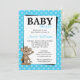 Um convite de chuveiro de bebê macaco fofo e moderno em azul turquesa e preto. Perfeito para um chuveiro de bebê de menina! Gráficos © Scrappin Doodles em www.scrappindoodles.com