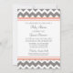 Convites personalizados para bebês em pessegueiros elegantes e modernos cor de laranja cor de pêssego, cinzas de carvão escuro e padrão zigzags de chevron branco. Personalizável com seu texto, entre em contato conosco para solicitar uma alteração de cor.