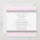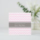 Convites personalizados para bebês em elegantes e modernos, cor-de-rosa claro, cinzas e padrão zigzags de chevron branco. Personalizável com seu texto, entre em contato conosco para solicitar uma alteração de cor.