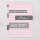 Convites personalizados para bebês em elegante e moderno pastel claro, cor-de-rosa-bebê, cinza de carvão escuro e padrão de listras retrô chevron zigzags branco. Personalizável com seu texto, entre em contato conosco para solicitar uma alteração de cor.