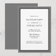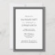Convites de despedida de solteiro cinza e preto. Frente - branco com borda cinza e preta e texto clássico. Verso é cinza sólido.