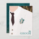 Adicione um toque de estilo à despedida de solteiro do seu melhor amigo com convites temáticos de smoking da Kustom By Kris. A frente diz "O Noivo" e apresenta um homem de smoking em frente a um papel de parede de brocado. Personalize o verso azul escuro com os detalhes da despedida de solteiro.