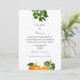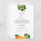 Convite de casamento de destino de na moda ideal para casais que se casam na Flórida; apresenta laranjas e flores de laranja com pontos de bolinhas ao contrário. Um design muito bonito, fácil de personalizar com seus detalhes de casamento.