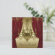 Convites de festa com lustre elegante vermelho borgonha e dourado. Este convite de festa com lustre vermelho e dourado e cortina vermelha elegante para todas as ocasiões é facilmente personalizado para o seu evento, simplesmente escolhendo o botão "Personalize!" para começar a adicionar os detalhes do seu evento, estilo de letra, tamanho e cor da letra e texto. Por favor, note que todos os adesivos, cartões e desenhos de convite que você encontrará na Zazzle são gráficos impressos sem joias, laços, relevos, rebaixos ou peças ou partes adicionadas.