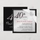 Convites de festa de 40º aniversário elegantes em prata e preto com caligrafia formal romântica e design personalizado -- Personalize o nome, data e detalhes para essa ocasião feliz. **NOTA: Tamanho para cartões de convite QUADRADOS. Selos, envelopes e cartões de agradecimento correspondentes disponíveis.