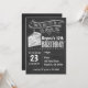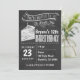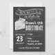Convites de festa de aniversário com fatia de bolo no quadro negro. Personalize do jeito que você quiser.