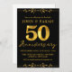 Celebre seu aniversário de ouro com estilo com nossos convites de 50º aniversário preto e dourado. Este design moderno e elegante é perfeito para comemorar 50 anos de amor e compromisso. Impressione seus convidados com esses convites sofisticados, apresentando uma paleta de cores atemporal que exala luxo. Personalize com os nomes do casal e detalhes da festa para um toque verdadeiramente personalizado. Encomende hoje mesmo seus convites de 50º aniversário preto e dourado e faça de sua celebração de aniversário de ouro algo inesquecível.