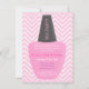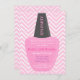 Trate a aniversariante até um dia de pampering junto com as amigas próximas. As ideias para atividades incluem manicure, pedicura, faciais, cabeleireiro e muito mais! Este convite de festas feminino é perfeito para o tema. Vem uma garrafa gigante de esmalte cor-de-rosa para personalização dos detalhes da festa. Um padrão pastel cor-de-rosa ziguezague para o fundo. Jogue esta festa num salão ou em casa!