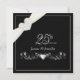 Convites de festa de aniversário de 25 anos elegantes, prateados e pretos com roteiro formal e design personalizado -- Personalize o nome, data e detalhes para esta ocasião feliz. **NOTA: Tamanho para cartões de convite QUADRADOS. Selos, envelopes e cartões de agradecimento correspondentes disponíveis.