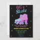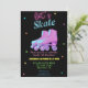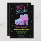 Um belo convite de aniversário de patinação no gelo perfeito para qualquer festa de patinação. Ele apresenta um fundo preto com pequenas estrelas coloridas