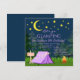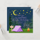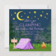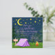 Convites de festa de aniversário glamping com uma linda tenda roxa em um fundo de floresta noturna. Estes convites de festa de aniversário de camping para meninas são facilmente personalizados para o seu evento, basta adicionar seus detalhes no estilo de letra e texto de sua escolha.