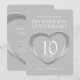 Convites de aniversário de casamento de 10 anos de estanho. Efeito de estanho fosco em gráficos impressos em forma de coração convites de aniversário de casamento de 10 anos de estanho. Personalize com os detalhes da sua festa de aniversário de 10 anos de casamento. O aniversário de 10 anos é tradicionalmente associado ao estanho e o coração simboliza o amor. Gráficos e design originais por Sarah Trett www.sarahtrett.com para www.mylittleeden.com no zazzle.