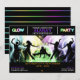 Com dançarinos silhuetados sob luzes vibrantes e brilhantes, em um fundo preto simples. Estes convites de festa glow são uma ótima escolha para qualquer festa de dança uv. Personalize as informações do seu evento como quiser, mas por favor note que as palavras brilhantes nas laterais no topo "FESTA GLOW" são imagens criadas e não são personalizáveis. Todos os meus designs são © Novastorm Designs