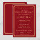 Convites de festa de despedida de solteira personalizáveis com texto art déco vermelho e dourado do Grande Gatsby