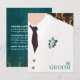 Adicione um toque de estilo à festa de despedida de solteiro do seu melhor amigo com convites de terno da Kustom By Kris. A frente diz "O Noivo" e apresenta um homem de terno diante de um papel de parede brocado. Personalize a parte de trás do azul-marinho com os detalhes da festa de despedida de solteiro.