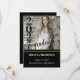 Convites de festa de formatura com foto do formando à frente com seu ano de graduação em negrito no lado esquerdo da foto. Informações da festa na parte de trás dos convites com texto em branco sobre fundo preto. Edite este convite com seus próprios detalhes e faça de sua celebração de formandos uma noite para se lembrar.