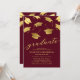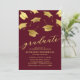 Convites de festa de formatura elegantes com fundo burgundy, boinas de graduação falsas caindo em dourado e um modelo de texto moderno que é fácil de personalizar.