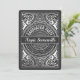 Convites de Festa de Formatura Preto e folha de prata falsa. Estilo de pôster Damask retrô vintage elegante