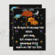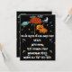 Convite de Halloween com Céu Preto, Lua Crescente, Saturno Colorido, Nuvens e muitas estrelas coloridas. Família de Abóboras Fofofas ao lado de uma árvore com Folhas laranjas de outono e um BOO grande! Com olhos no topo das letras, convidando todos para uma festa de Halloween da Colheita mais, mas não tão assustadora. Perfeito também para a Festa de Halloween da Colheita da Igreja!