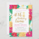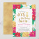 Convites de luau de aniversário dourado tropical com flores tropicais divertidas e bonitas e abacaxis, com detalhes dourados. Perfeito para uma festa de aniversário com tema luau! Mostrado aqui para um aniversário de quarenta anos, mas você pode mudar para qualquer idade ou ocasião!