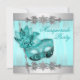 Modelo de convite de festa de máscaras em turquesa elegante, prata e azul-teal. Este lindo convite de festa de máscaras em azul-turquesa é facilmente personalizado para a sua festa ou evento, adicionando os seus detalhes na frente e no verso, simplesmente escolhendo o botão "Personalize!" para começar a adicionar os detalhes do evento, estilo de letra, tamanho e cor da letra e texto. Por favor, note que todos os desenhos de convite que você encontrará na Zazzle são gráficos impressos em papel liso, sem joias, laços, relevos, rebaixos ou peças ou partes adicionadas.