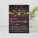Convites de Festa de Máscaras Coloridos Roxos MASQUERADE. Personalize com texto como quiser.