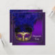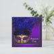 Elegante convite de festa de máscaras em azul real, roxo e dourado apresenta um fundo roxo e dourado com uma linda máscara de penas roxa, azul e dourada. Este convite de festa de máscaras roxo e dourado é facilmente personalizado para a sua festa ou evento, bastando clicar no botão laranja "Personalize!" para começar a adicionar os detalhes do evento, estilo de letra, tamanho e cor da fonte e texto. Por favor, note que todos os desenhos de cartões, convites e topos de bolo que você encontrará na Zazzle são gráficos impressos sem joias, laços, relevos, ou peças ou partes adicionais.